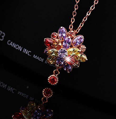 Crystal Chain Pendant for Women Double Flower Swiss Cubic Zircon 18K RoseGold Plated Chain Pendant for Women and Girls