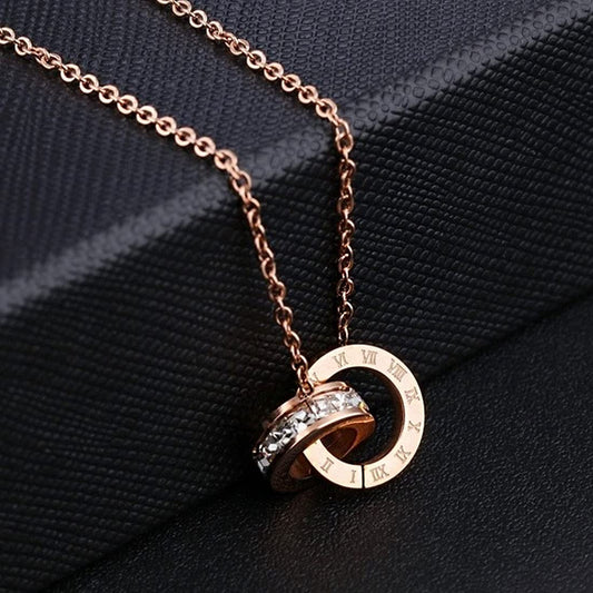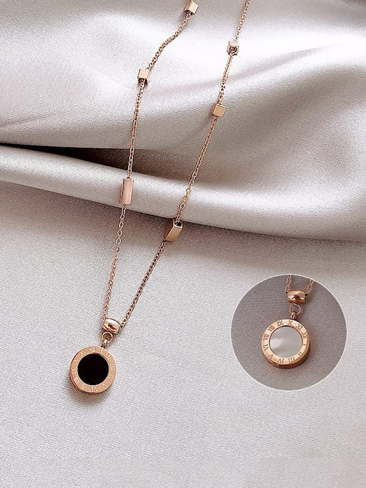 Pendant for Women Stainless Steel 18K Rose Gold Plated Roman Numericals Engraved Statement Style Chain Pendant for Women and Girls.