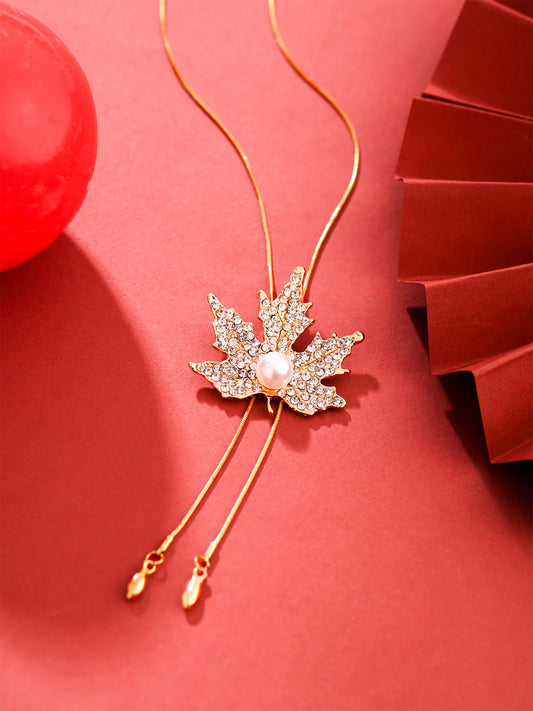 Long Chain Necklace for Women Maple Leaf Pendant for Girls Rosegold Plated Crystal Long Chain Pendant Necklace for Women and Girls