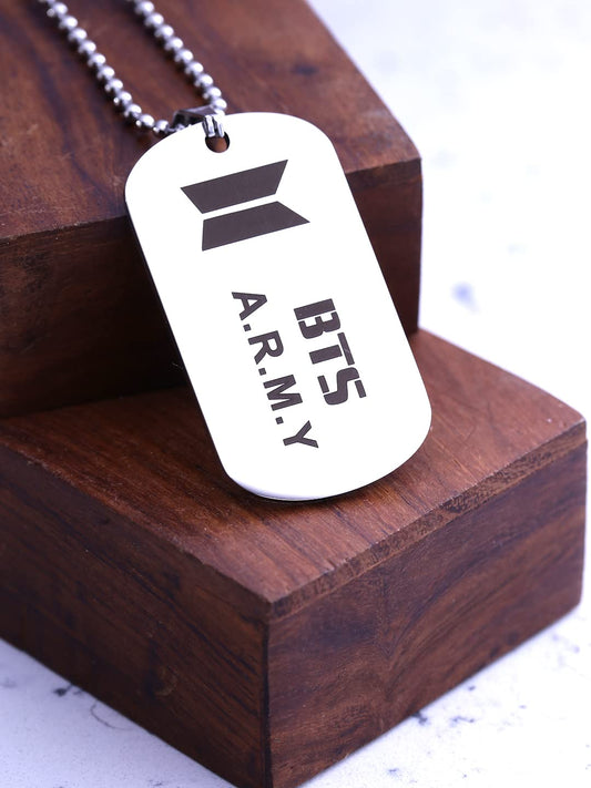 BTS Pendant for Women Silver Chain Pendant Stainless Steel 3 mm BTS Army Dog Tag Pendant Necklace for Men and Boys.
