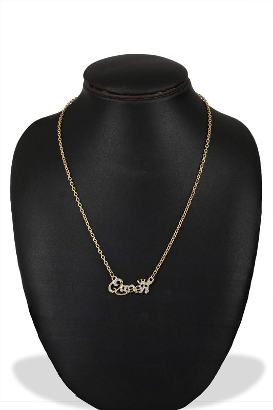 Pendant for Women Alphabetical Queen Crown Clavicle Rhinestone Short Chain Gold Plated Chain Necklace for Women and Girl's.