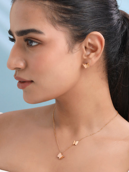 Pendant Set for Women Butterfly Surgical Steel 18K Real Rose Gold Plated Pendant Set for Girls and Women