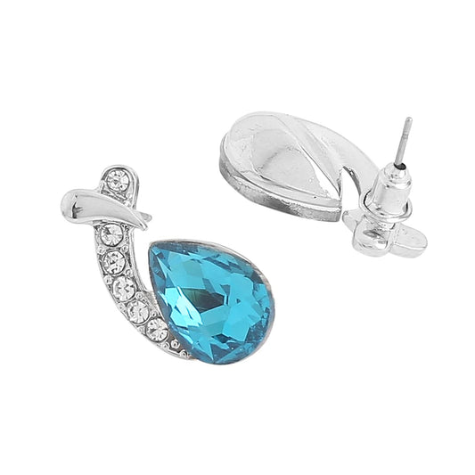 Pendant Set for Women & Girls Blue Crystal Pendant Set for Women | Pendant With Earrings Set | Birthday Anniversary Gift for Wife Birthday Gift for Girls (TearDrop Pendant Set)