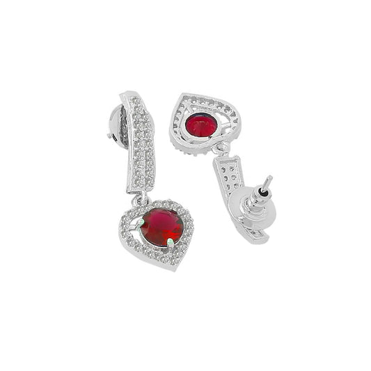 Pendant Set for Women Silver Toned AD/American Dimaond Crytal Studded Geometric Shaped Pendant Set with Earrings for Women and Girls Valentine Gift for Girls