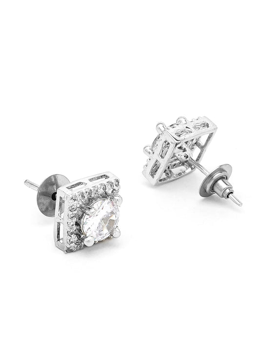 Pendant Set for Women Silver Toned AD/American Dimaond Crytal Studded Square Shaped Pendant Set with Earrings for Women and Girls