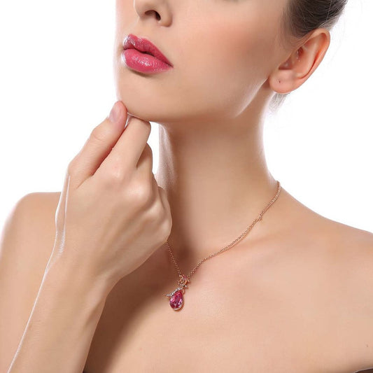 Heart Designed Pink Crystal Pendant Set for Women | 25cm Chain | Anniversary & Birthday Gift