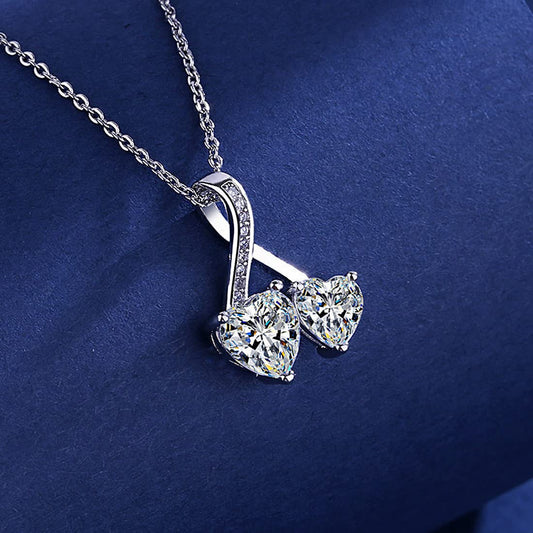 Pendant Set for Women & Girls Blue Crystal Pendant Set for Women | Pendant With Earrings Set | Birthday Anniversary Gift for Wife Birthday Gift for Girls (White Dual Heart Pendant Set)