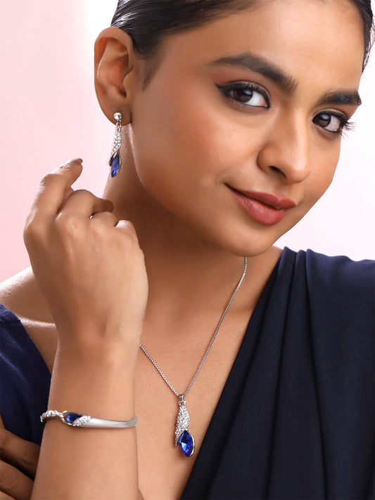 Pendant Set for Women and Girls Blue Crystal Pendant Set For Women | Silver Toned Pendant With Earrings Set for Girls | Birthday Gifts For Women Valentine Gift for Girls