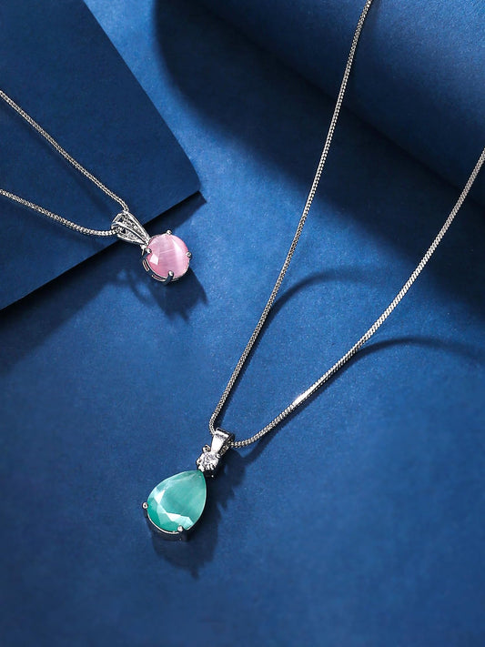 Pendant Set for Women and Girls Pendant for Women | Tear Drop Shaped Blue Crystal Pendent Chain| Birthday Gift for girls and women Anniversary Gift for Wife