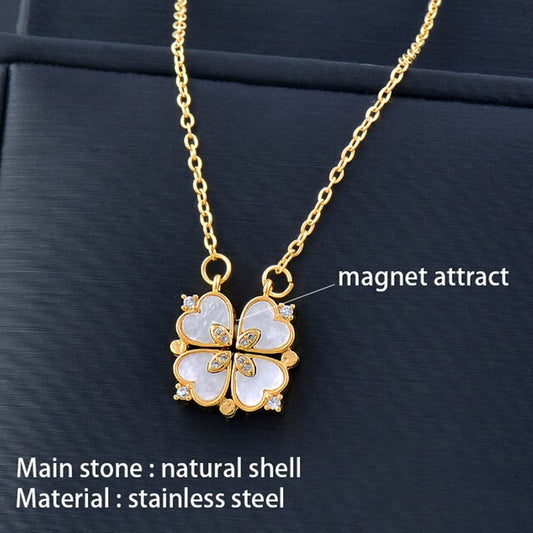 Pendant for Women and Girls Crystal Heart Necklace for Women | Gold Plated Joining Heart Pendant for Girls Clover Necklace | Birthday Gifts For Women Valentine Gift for Girls
