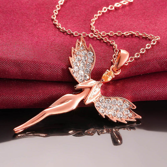 an Angel Pure Soul with Wings Pendant (Austrian Crystal Hallmarked 18K Rose Gold Plated) for Girls and Women by YELLOW CHIMES