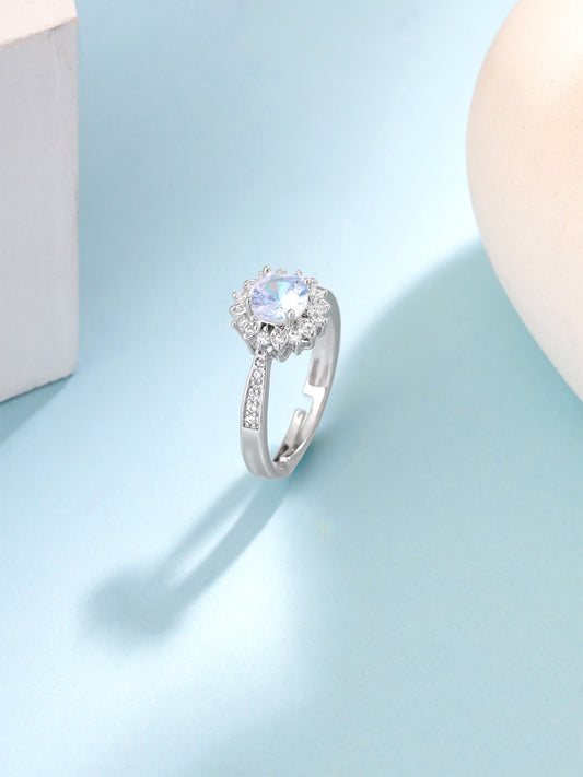 Adjustable Crystal Rings For Women | White Stone Ring Pack of 1 | Silver Toned A5 Grade Crystals Finger Ring for Girls | Birthday Gift For Girls & Women Anniversary Gift for Wife