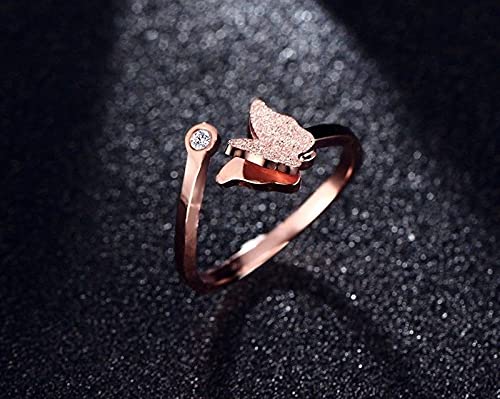 Rings for Women Hibiscus Pink Opal Butterfly Ring Cubic Zirconia Rosegold Plated Adjustable Ring for Women and Girl's