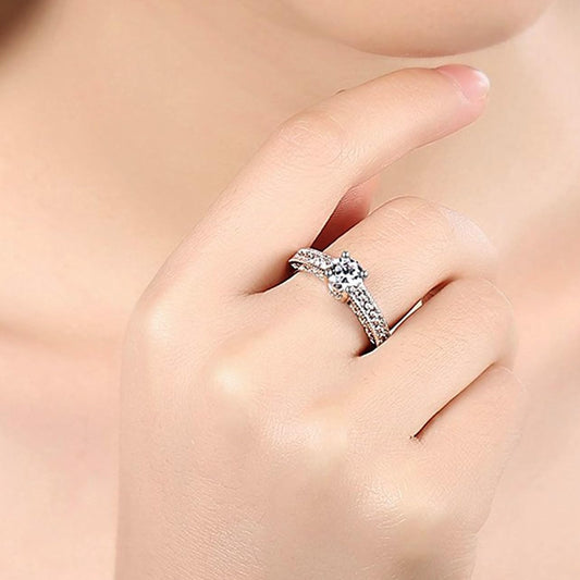 Dove Beauty Dazzling Engagement Proposal Austrian Crystal Sterling Silver (Plated Designer Ring for Girls
