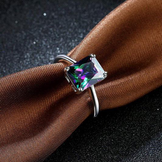 Crystal Rings For Women | Multi Color Stone Shaped Ring Pack of 1 | Silver Toned Adjustable Crystals Finger Ring for Girls | Birthday Gift For Girls & Women Anniversary Gift for Wife
