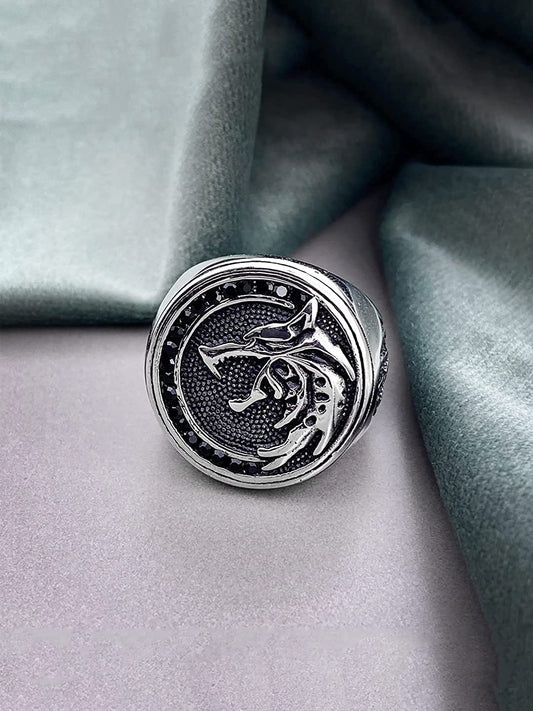 Rings for Men Stainless Steel Men Ring Viking Ring Wizard Warrior Hunter Wolf Head Silver Ring for Men and Boy's Size 10