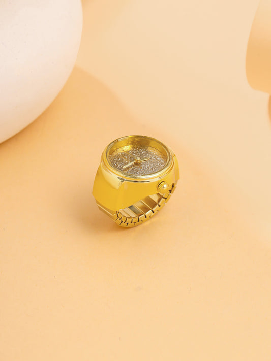 Rings for Women Watch Ring Gold Dial Analog Ring Watch Stretchable Ring for Women and Girls.