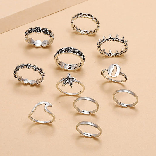 Rings for Women 10 PCS Combo Ring Set Oxidised Silver Plated Knuckle Rings Set for Women and Girls.