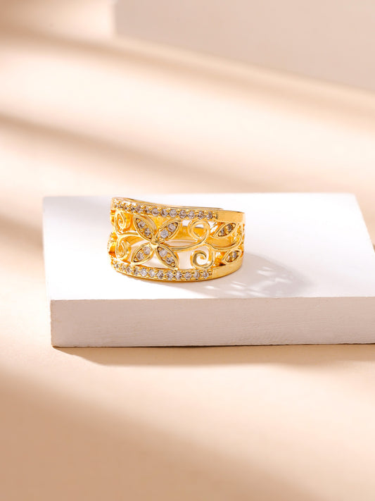 Rings for Women Crystal Studded Flower Band Golden Adjustable Ring for Women and Girls.