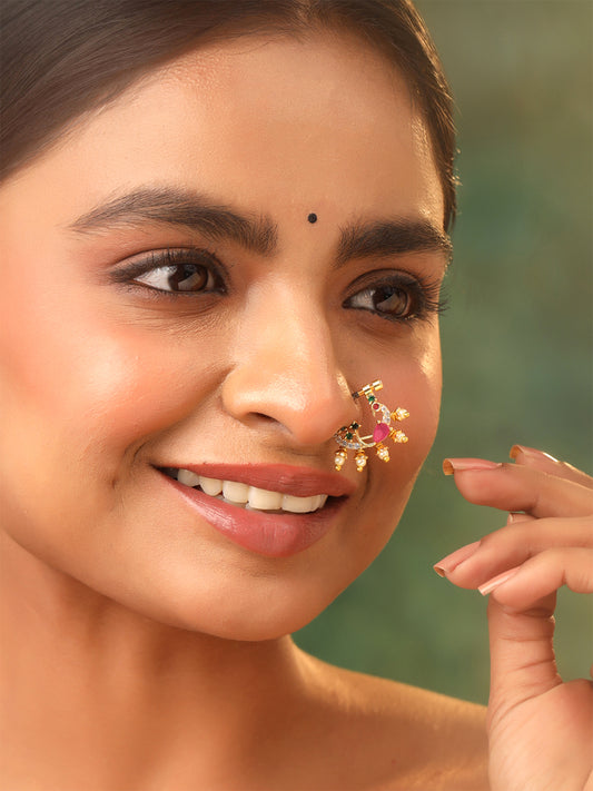 Nose Ring for Women American Diamond Nose Pin Gold Plated Traditional Non Piercing Nose Rings for Women and Girls.