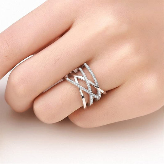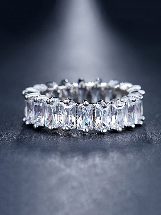 Rings for Women White Crystal Rings Silver Plated Eternity Crystal Band Rings for Women and Girls.