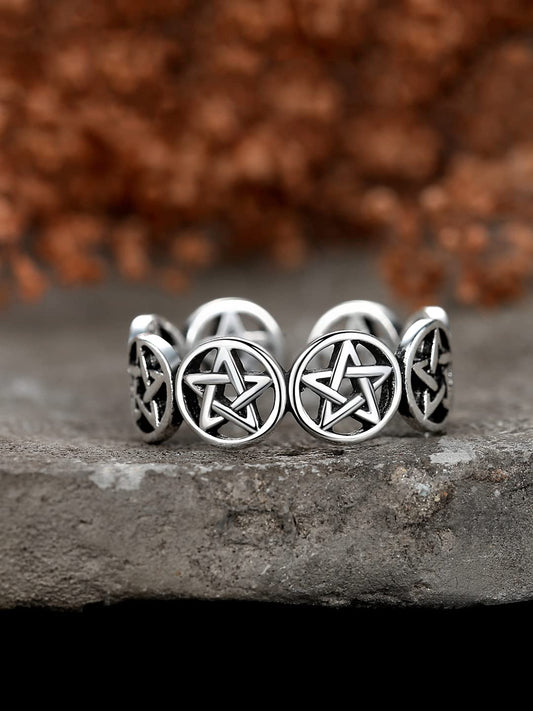 Rings for Women Silver Toned Star Symbol Ring Steel Adjustable Finger Ring for Men and Women.