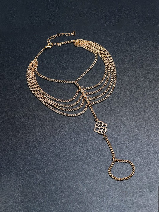 Multichain Anklets for Women Anklets with Attached Toe Ring Gold Toned Foot Jewellery for Women and Girls