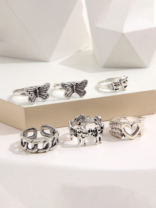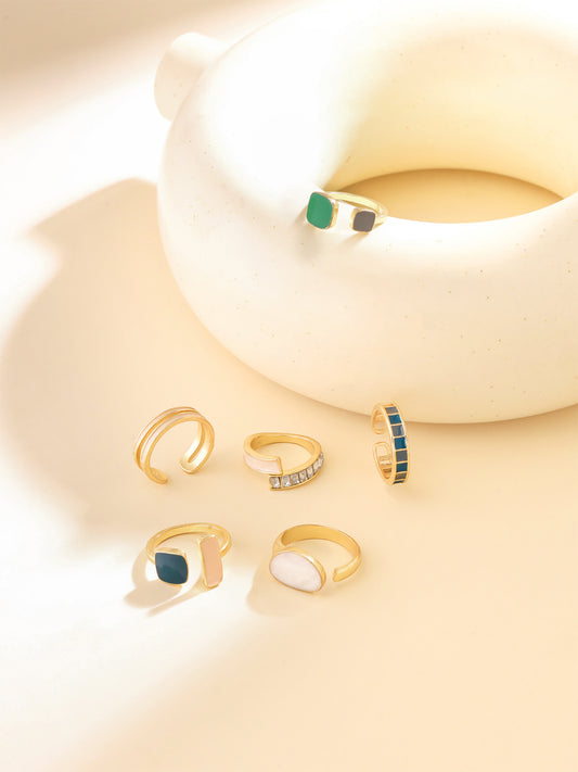 Combo of 6: Multicolor Stackable Rings for Women | Adjustable | Silver