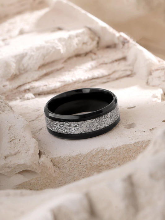 Rings for Men Western Style Band Ring Stardust Black Band Stainless Steel Rings for Men and Boy's.