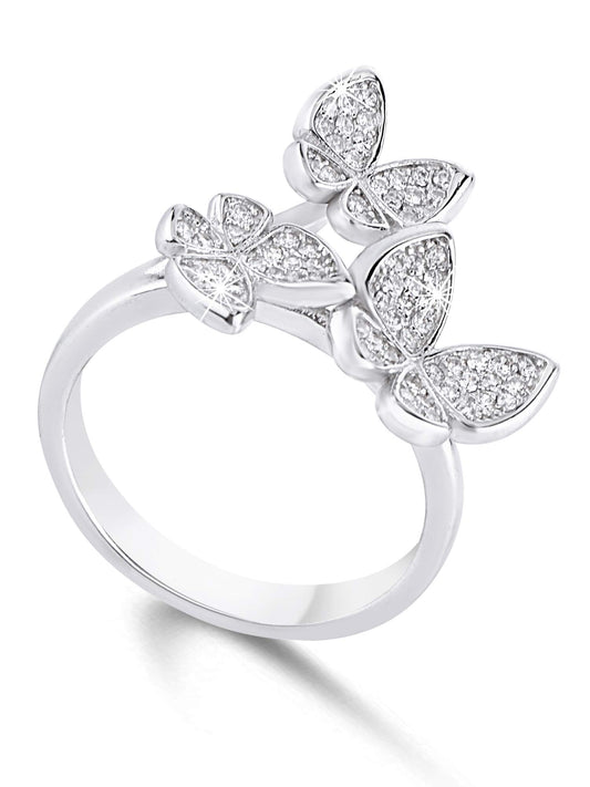 Butterfly Silver Ring - 92.5% Sterling Silver with A5 Grade Zircons | US Size 7 | Silver