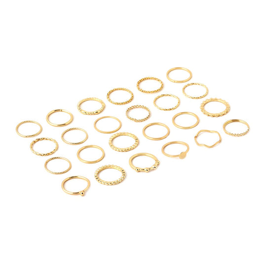 Rings for Women and Girls Fashion Aesthetic Golden Ring Set | Gold Plated Aesthetic Ring Knuckle Rings Set 24 Pcs Combo Rings | Birthday Gift For Girls and Women