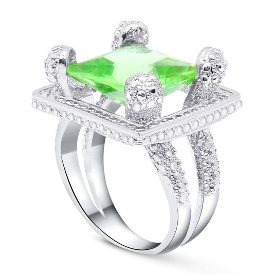Rings for Women Silver Plated Natural Light Green Emerald Gemstones Square Shaped Crystal Rings for Women and Girl's (Size 6)