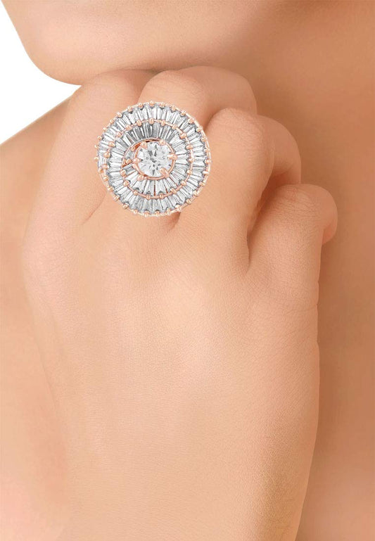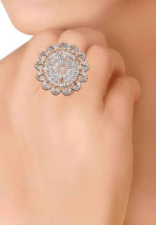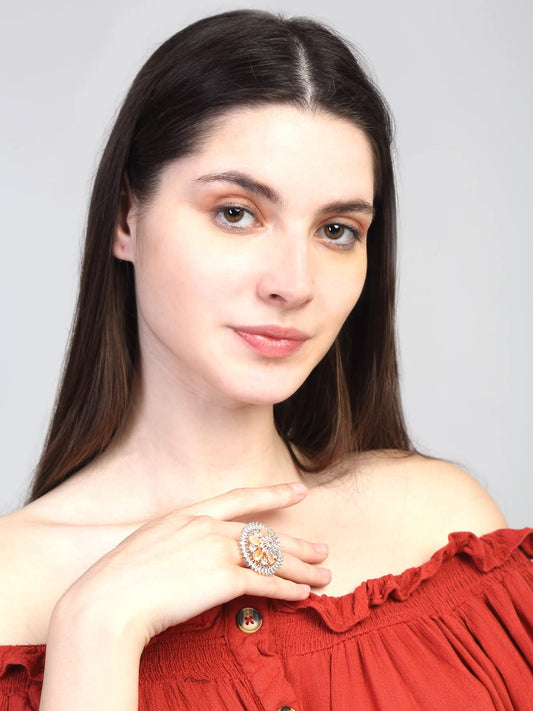 Rings for Women American Diamond Ring Rhodium-Plated Crystal AD-Studded Floral Finger Ring For Women and Girls. (RGX 4)