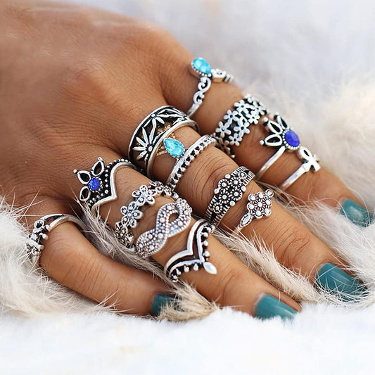 Rings for Women 13 Pcs Combo Rings Set Vintage Style Midi Finger Silver Oxidised Knuckle Rings Set for Women and Girls.