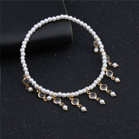 Latest Fashion Crystal Tassels Peal String 2 PC Stretchable Anklet for Women and Girls