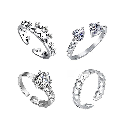 Rings for Women and Girls Crystal Ring |Adjustable Crystal Rings | Silver Tone Combo of 4pcs Ring for Women | Birthday Gift For girls and women Anniversary Gift for Wife