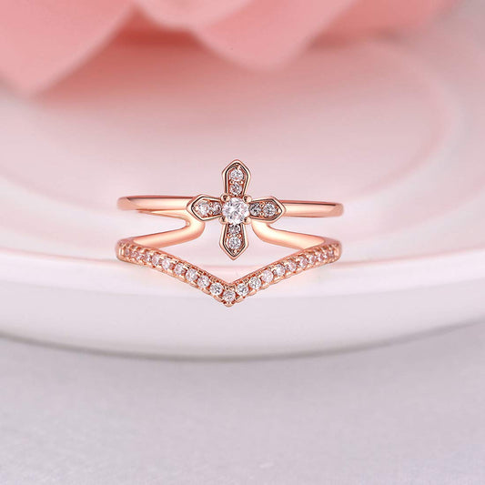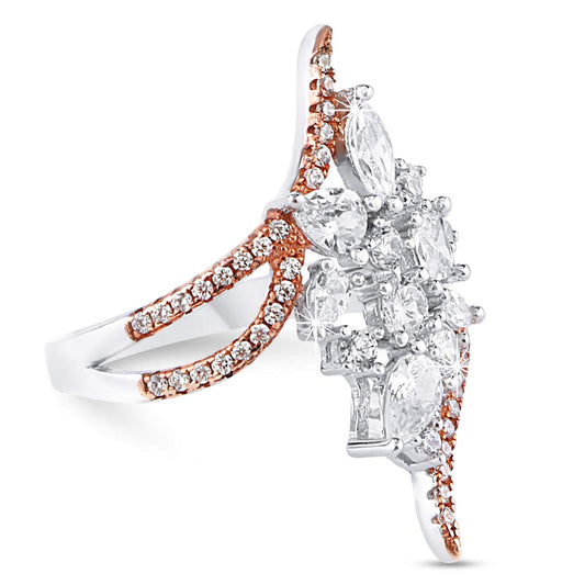 Victoria Cut 925 Sterling Silver Hallmark and Certified Purity Crystal Rose Gold Plated Silver Ring for Women and Girls
