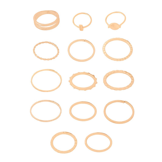 Rings for Women and Girls Fashion Aesthetic Golden Ring Set | Gold Plated Aesthetic Ring Knuckle Rings Set 14 Pcs Combo Geometric Rings | Birthday Gift For Girls and Women