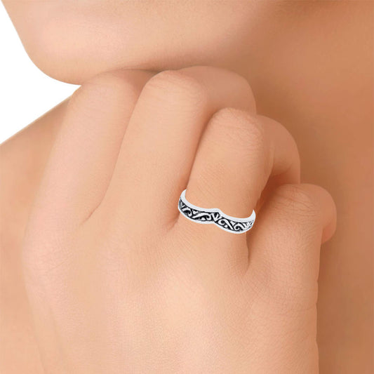 Rings for Women Silver Oxidized Big Charm Adjustable Ring for Women