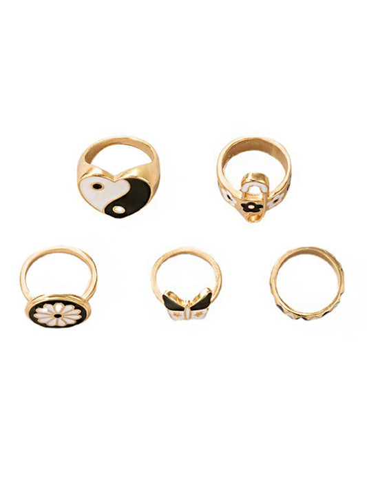 Knuckle Rings for Women 5 Pcs Black Stack Rings Gold Plated Midi Finger Knuckle Ring Set for Women and Girls.