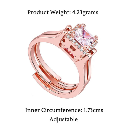 Rings for Women & Girls Dual Flip Rose Gold Ring | Adjustable Crystal Rings | Square Shaped Crystal Ring for Women | Birthday Gift for girls & women Anniversary Gift for Wife