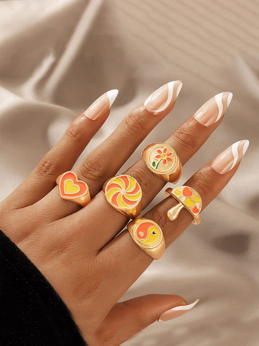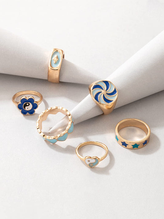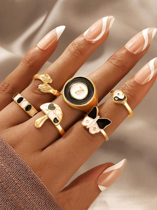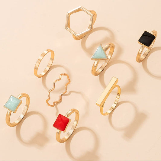 Rings for Women and Girls Fashion Aesthetic Multicolor Ring Set | Gold Plated Aesthetic Ring Knuckle Rings Set 8 Pcs Combo Geometric Rings | Birthday Gift For Girls and Women