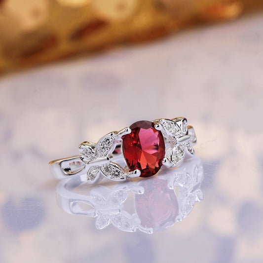 Crystal Rings For Women | Red Crystal Ring For Women | Rose Gold Plated Finger Ring for Girls | Birthday Gift For Girls & Women Anniversary Gift for Wife