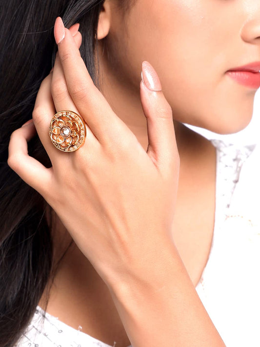Ring for Women Gold Toned Floral Deisgned Crystal Studded Adjusatble Ring for Women and Girls