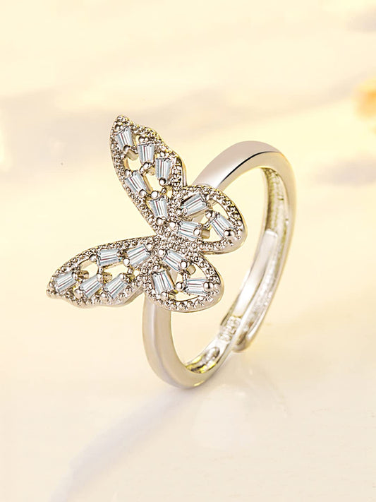 Crystal Rings For Women | Butterfly Charm Ring For Women | Rhodium Plated Finger Ring for Girls | Birthday Gift For Girls & Women Anniversary Gift for Wife