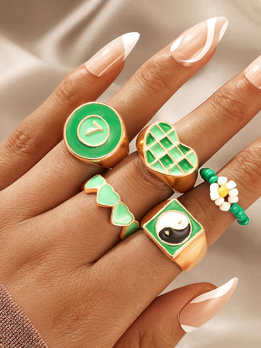 Knuckle Rings for Women Combo of 6 Pcs Green Stack Rings Gold Plated Midi Finger Knuckle Ring Set for Women and Girls.