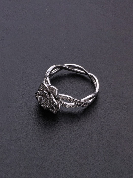 Rings for Women American Diamond Ring Rhodium-Plated Pestal AD-Studded Floral Finger Ring For Women and Girls. (Combo 2)