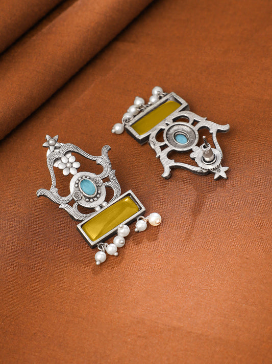 Silver Oxidised Earrings for Women & Girls | Traditional Oxidised Silver Drop Earrings Afghani Style Yellow Monalisa Stone Studded Earrings | Birthday Anniversary Gift for Wife Women