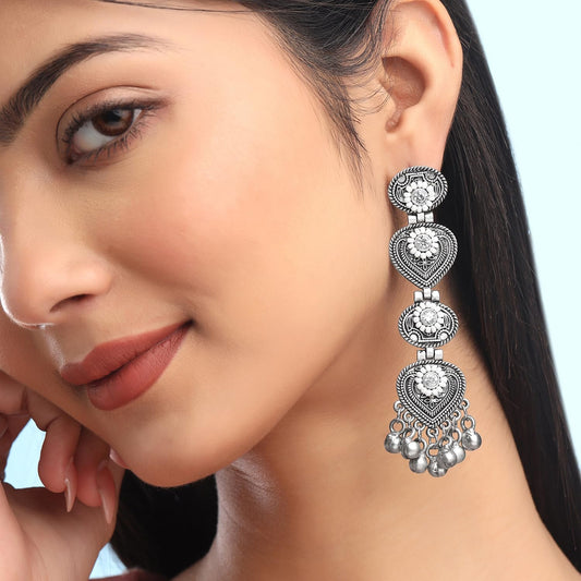 Earrings For Women Silver Oxidised Long Dangler Earrings | Traditional Oxidised Silver Plated White Stone Danglers Earrings I Birthday Gift For Girls & Women Anniversary Gift for Wife