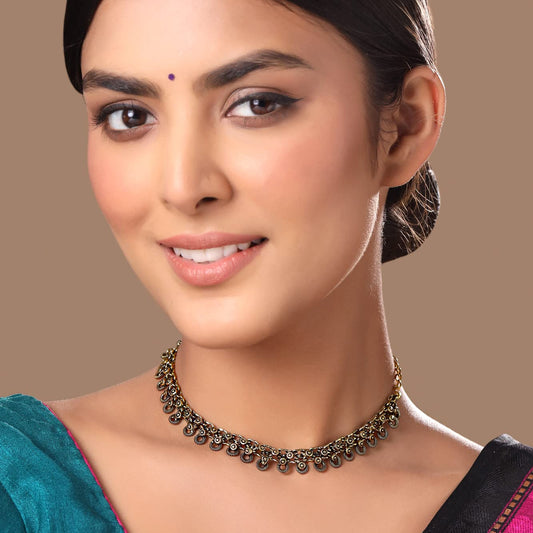 Necklace for Women and Girls Oxidised Gold Necklace for Women | Oxidised Gold Button Designed Necklace for women | Birthday Gift for girls and women Anniversary Gift for Wife